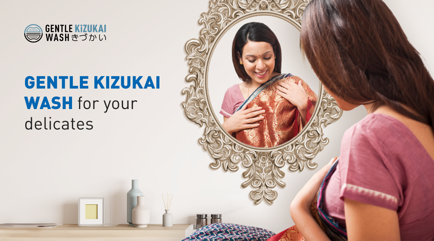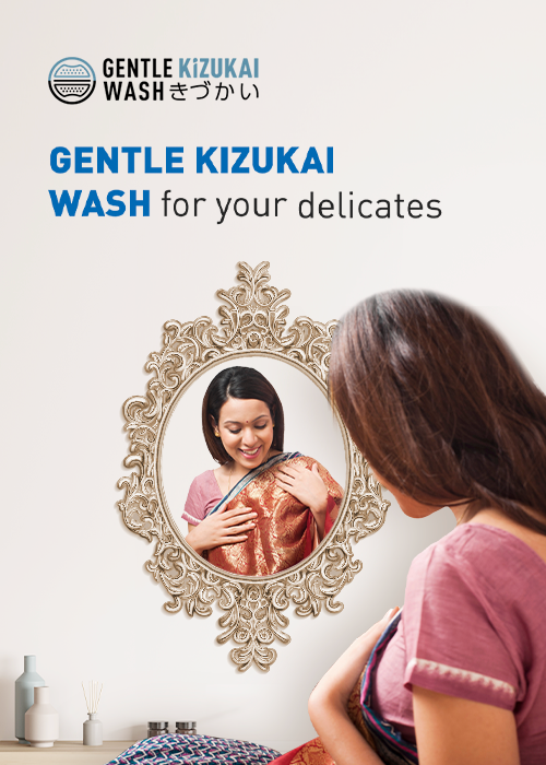 Just put your delicate & designer garments on the “Gentle Kizukai Net” in the tub. You can now wash embroidered, satin and other delicates in our washing machine which you previously hand-washed or had dry-cleaned. The pour & movement of foam, water gives a gentle but an effective wash.